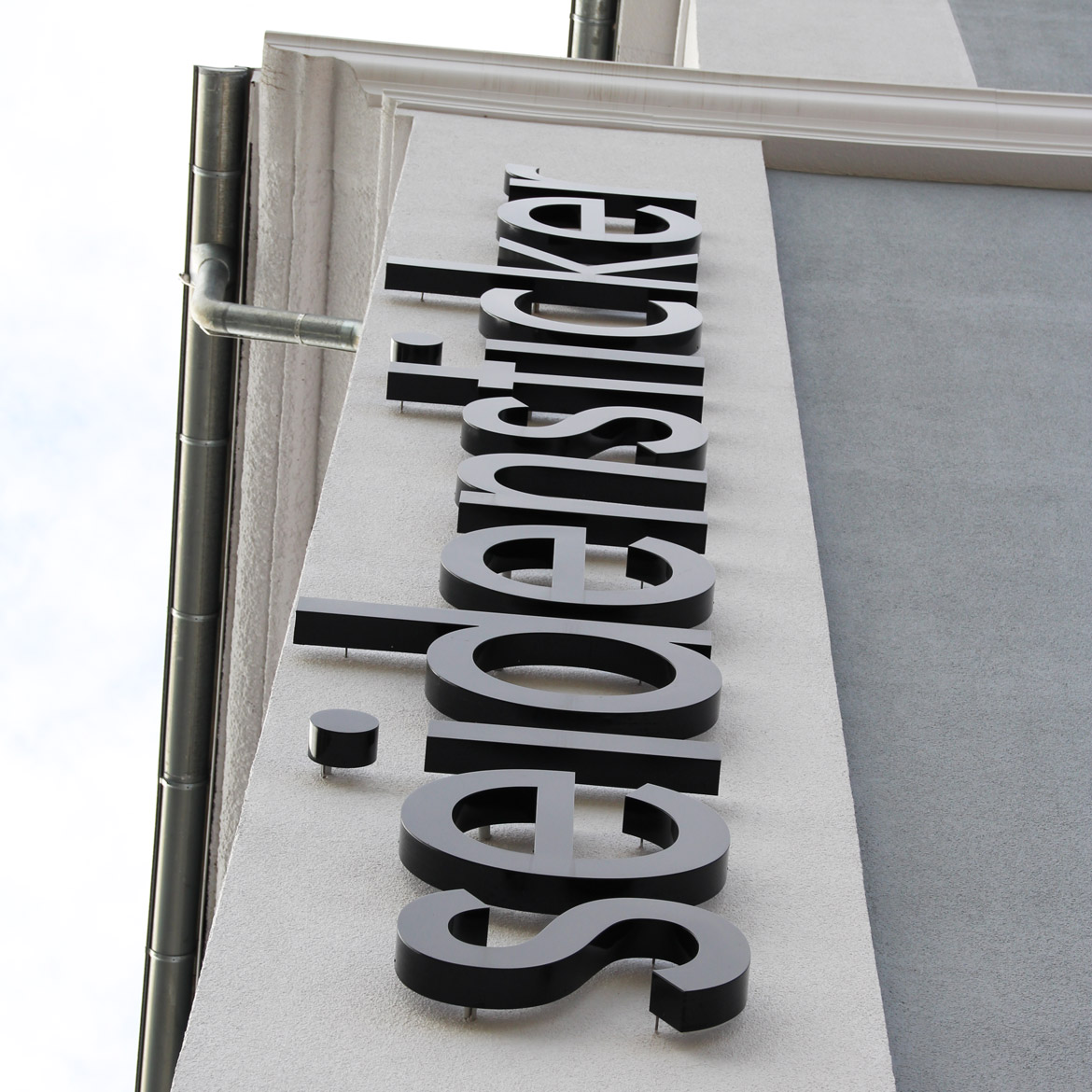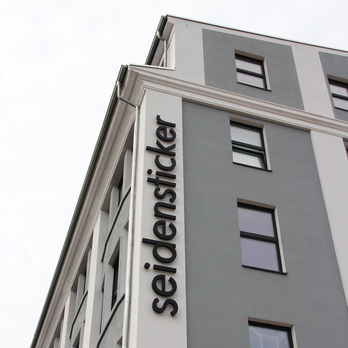 Wir, Fa. Infographik, haben die Montage des Logos „Seidensticker“ als Schattenschrift-Beleuchtung an der Fassade erfolgreich abgeschlossen.