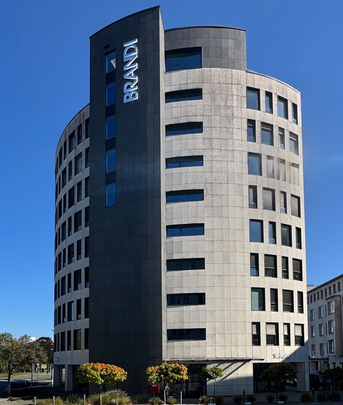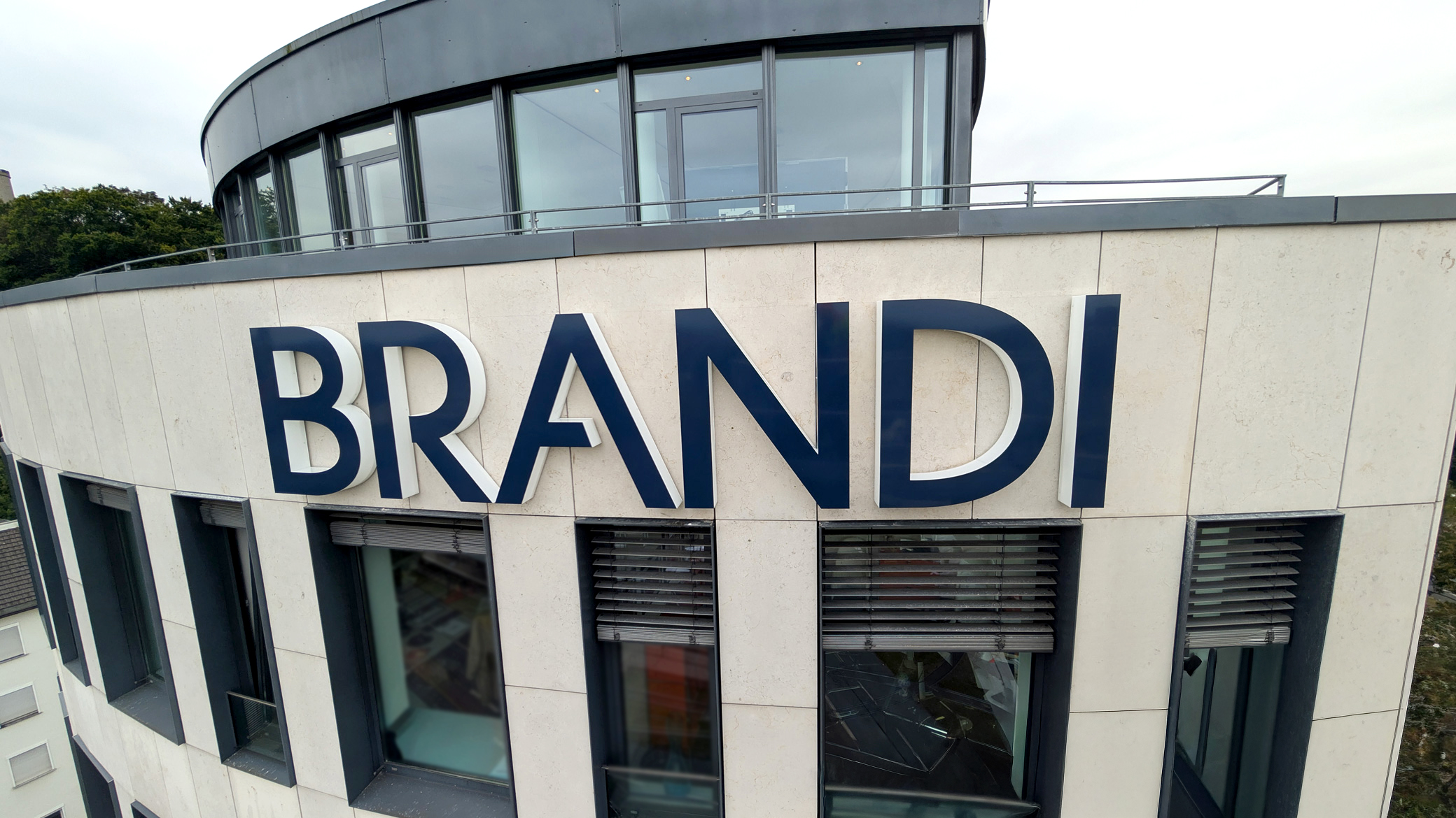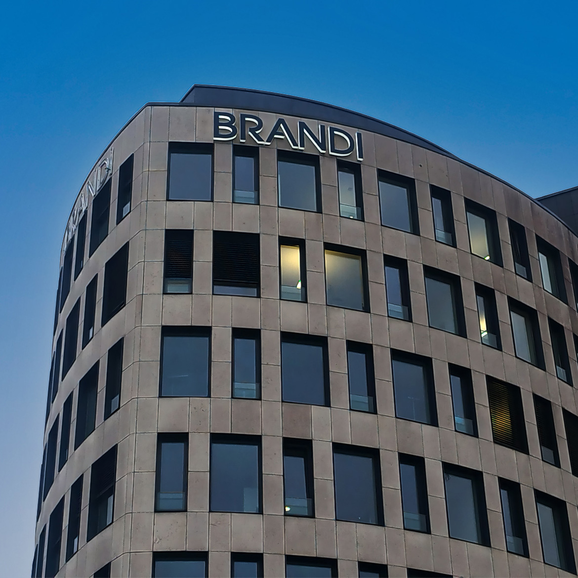 Für das markante Gebäude der BRANDI Rechtsanwälte am Adenauerplatz in Bielefeld haben wir drei hochwertige Lichtwerbeanlagen realisiert.